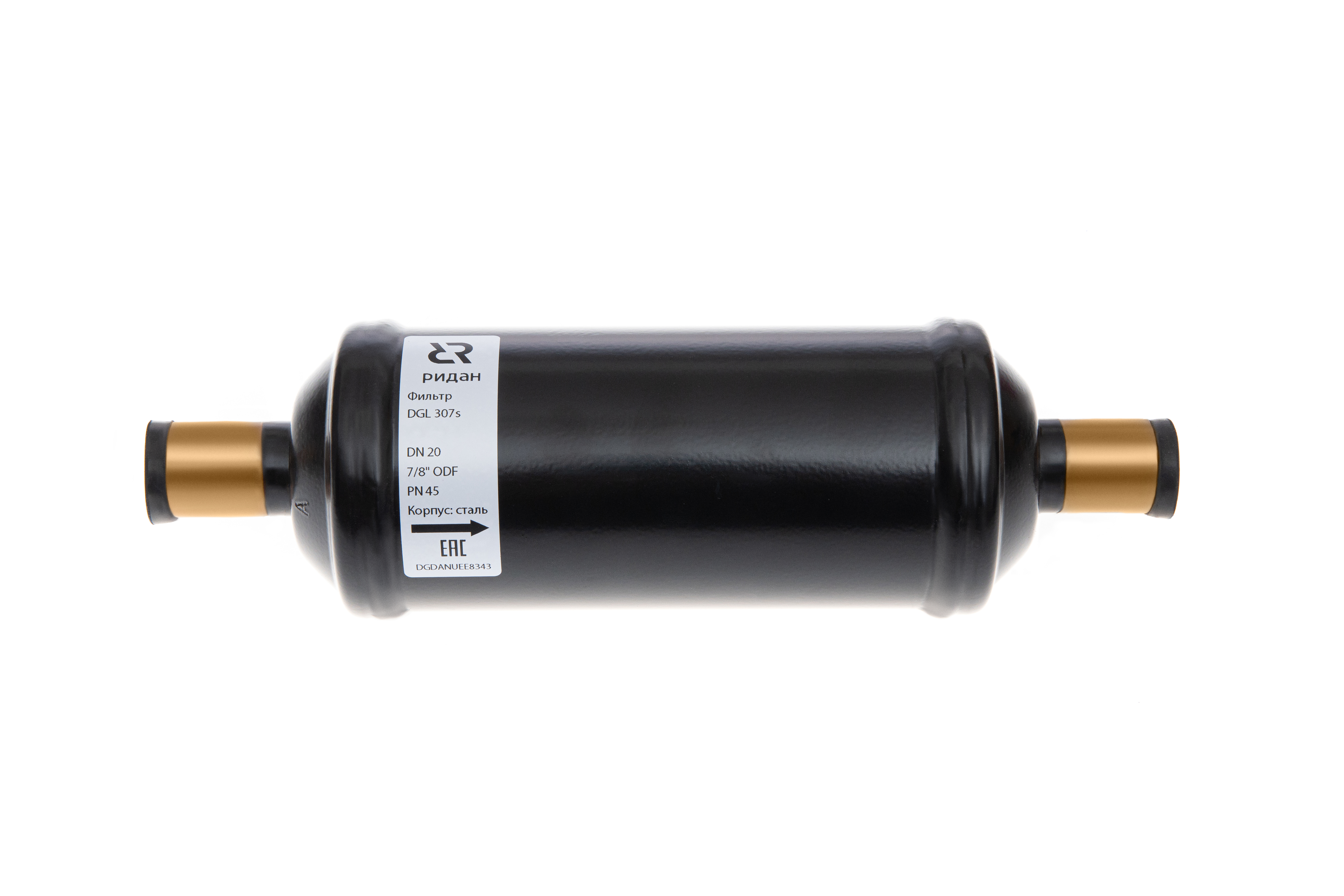 Ридан 023Z0070R — Герметичный фильтр-осушитель с твердым сердечником DML 306S (80% mol + 20% al), присоединительные патрубки 3/4"