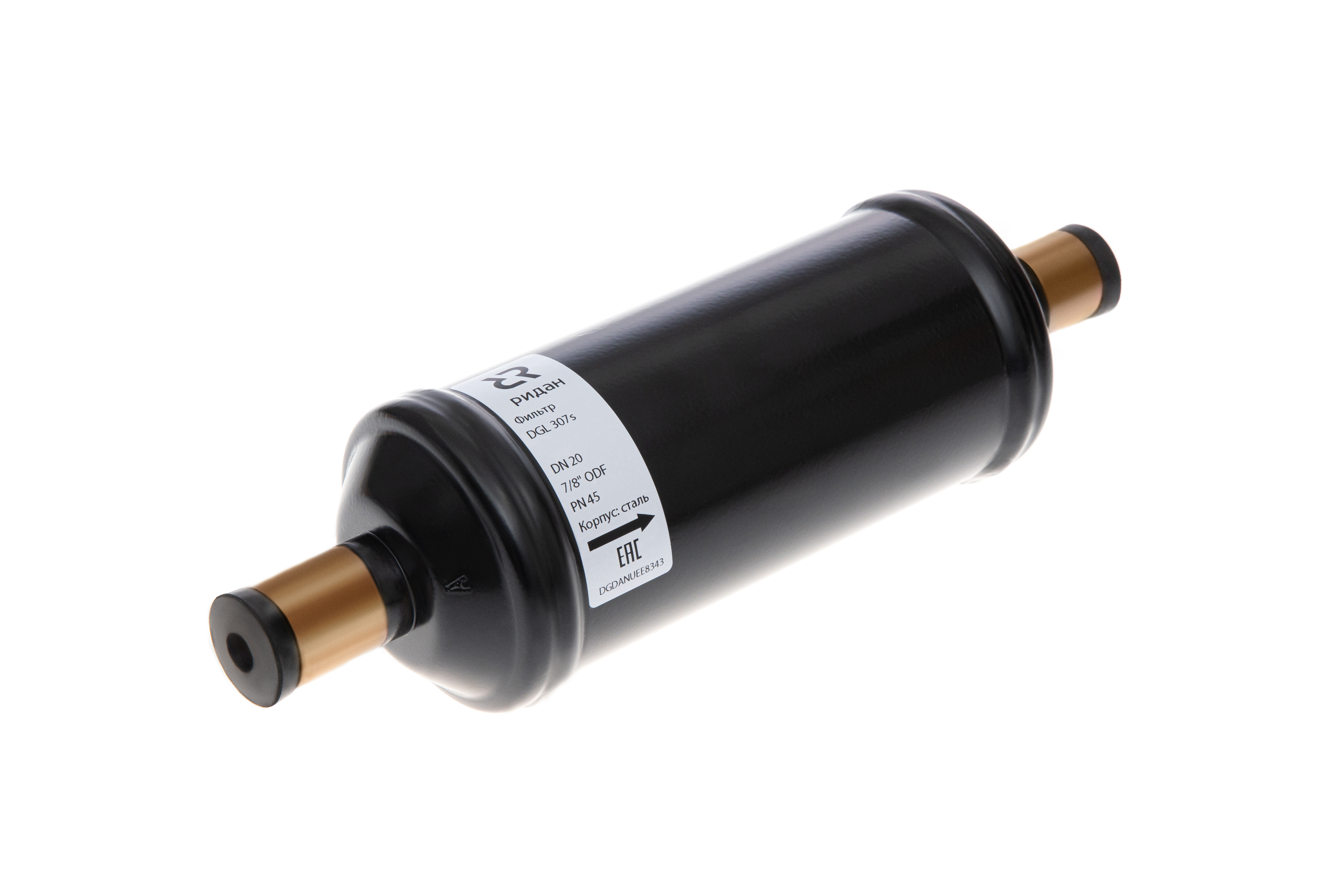 Ридан 023Z0072R — Герметичный фильтр-осушитель с твердым сердечником DML 309S (80% mol + 20% al), присоединительные патрубки 1"1/8