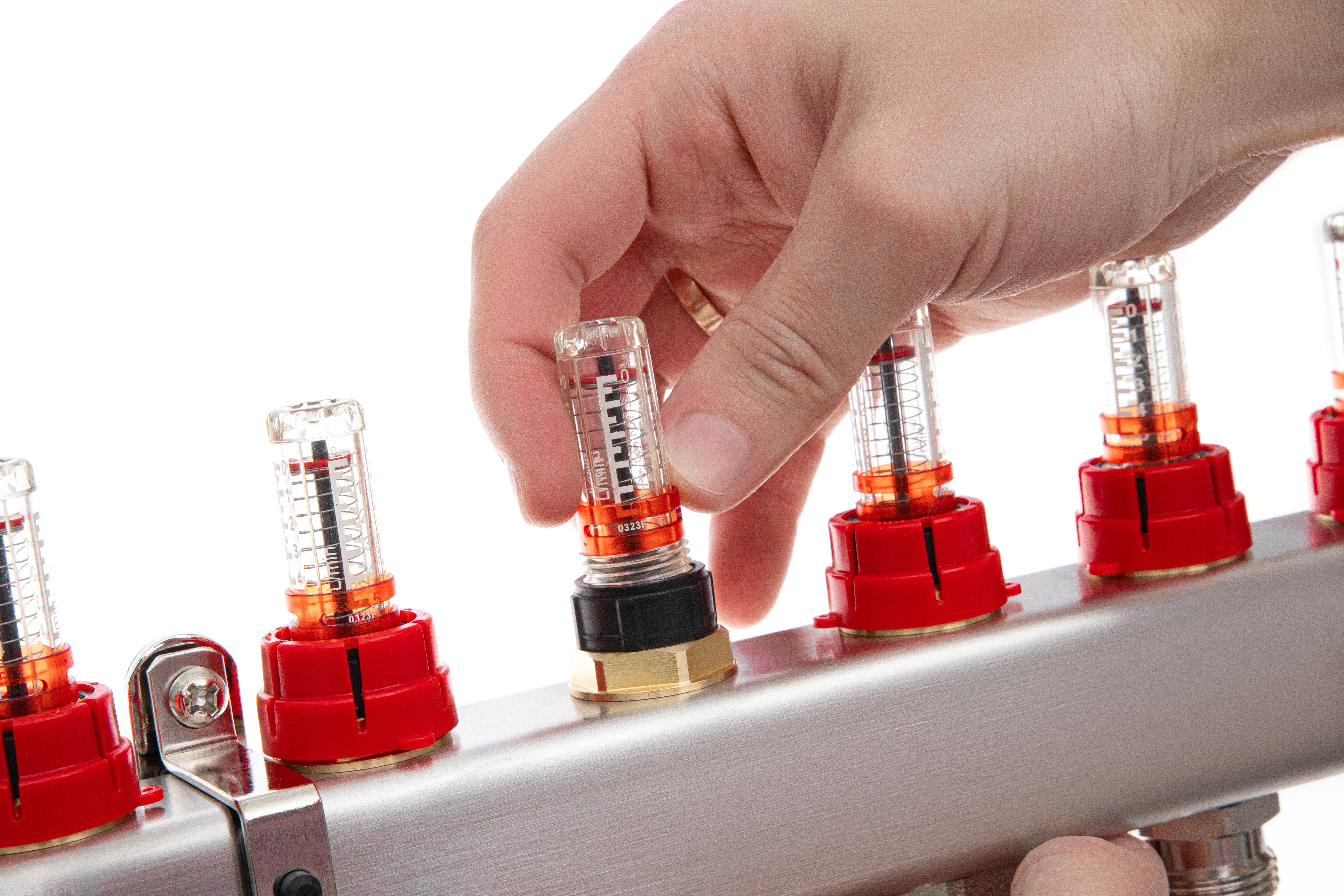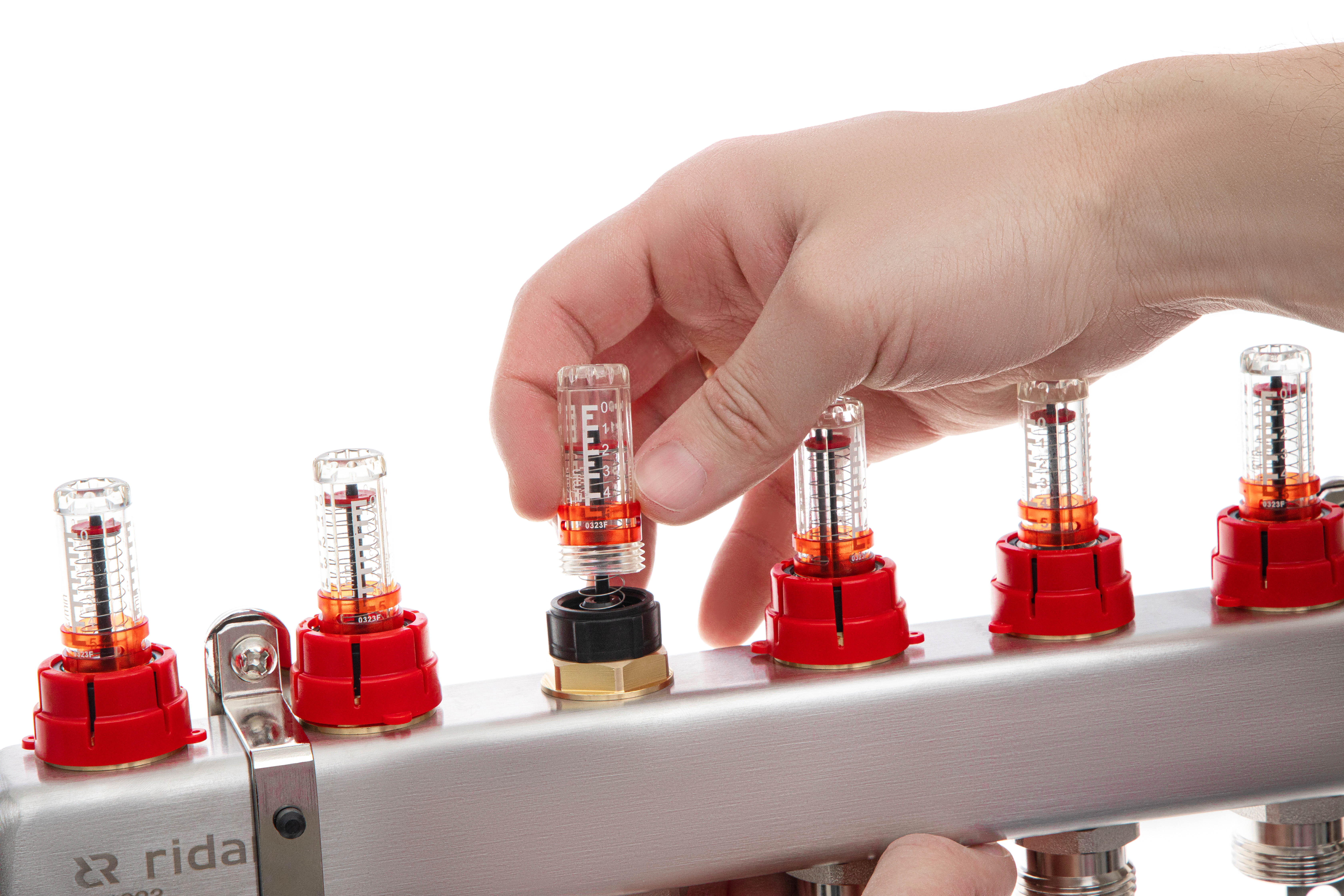 Ридан 088U0957R — Комплект коллекторов SSM-7RF set с расходомерами, кронштейнами, ручным воздухоотводчиком, сливным краном и торцевой заглушкой, 7 контуров