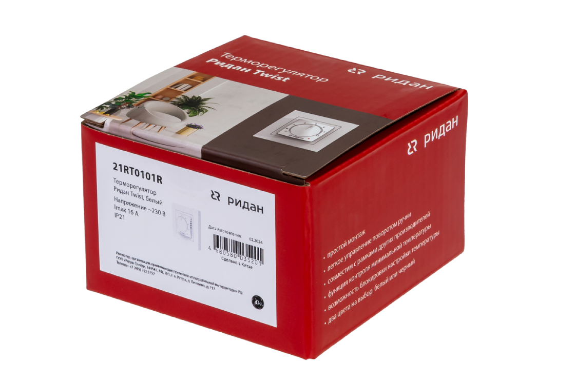 Ridan 21RT1004R — Розничный комплект для теплого пола: нагревательный мат Ridan TF-150 2,5 м² с терморегулятором Ridan Twist (белый)