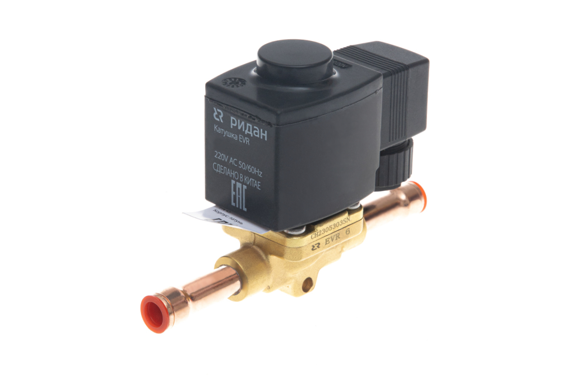 Ридан EVR 6 032L1212R — Клапан электромагнитный переменного тока НЗ, DN6, присоединительные патрубки 10 мм, под пайку ODF
